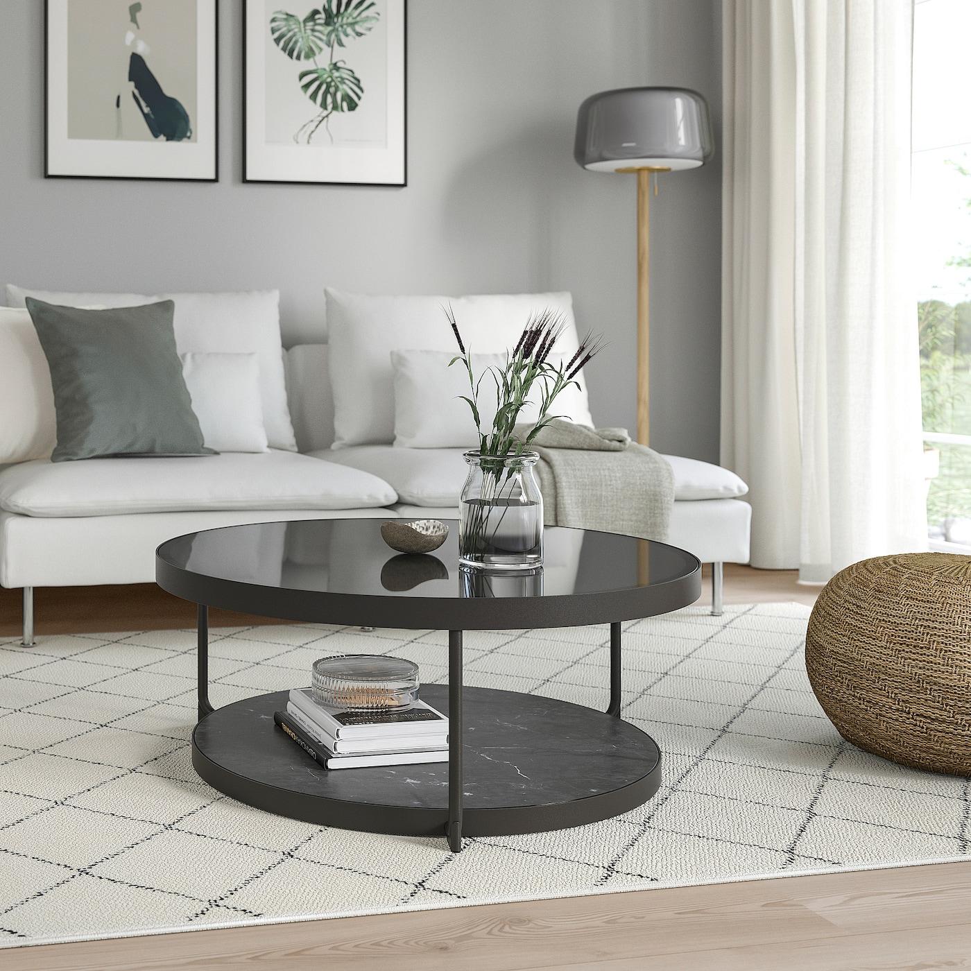 Круглый столик ФРЁТОРП лаконичного дизайна изготовлен из прочных материалов.