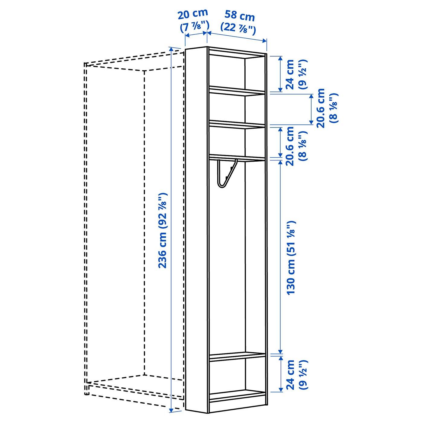 Бесплатно 10 лет гарантии. Подробнее об условиях гарантии — в гарантийной брошюре. Неглубокий каркас – идеальное решение для небольших помещений. Регулируемые ножки позволяют скорректировать неровности пола. С помощью программы планирования гардероба PAX вы можете легко дополнить свою комбинацию интегрированной подсветкой. После выбора источника освещения программа предложит необходимые аксессуары.