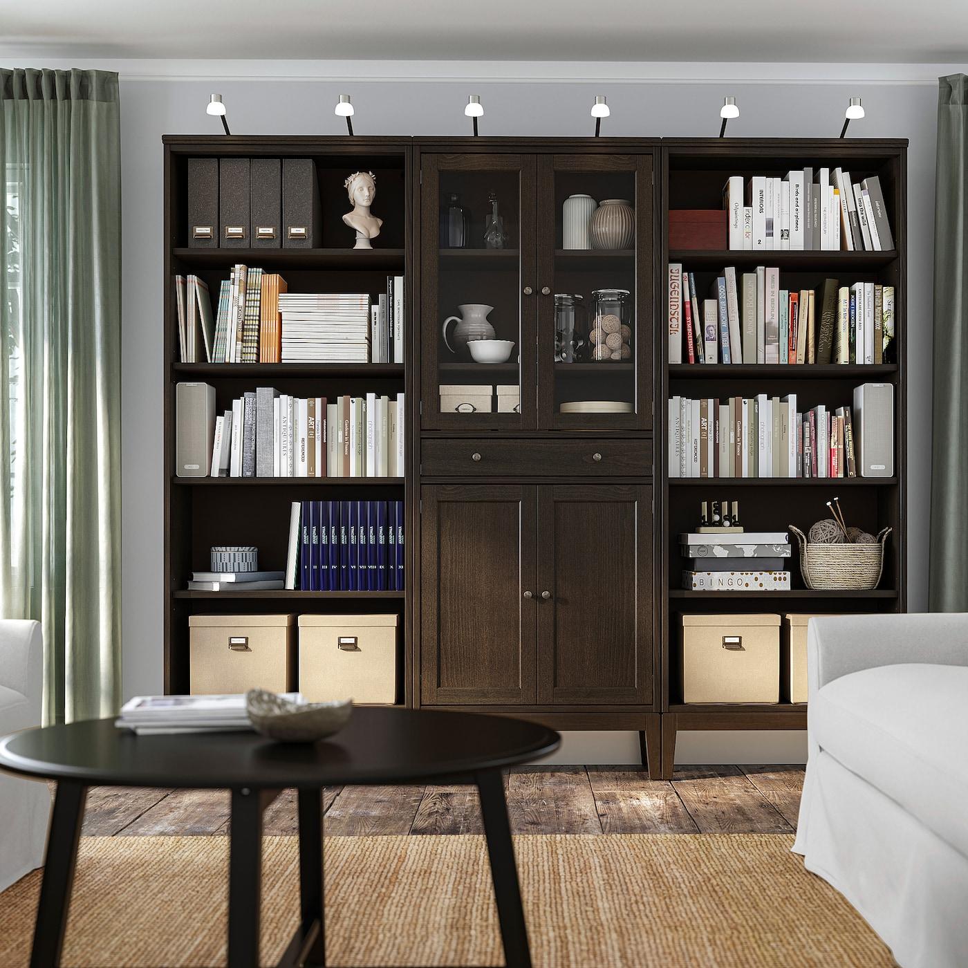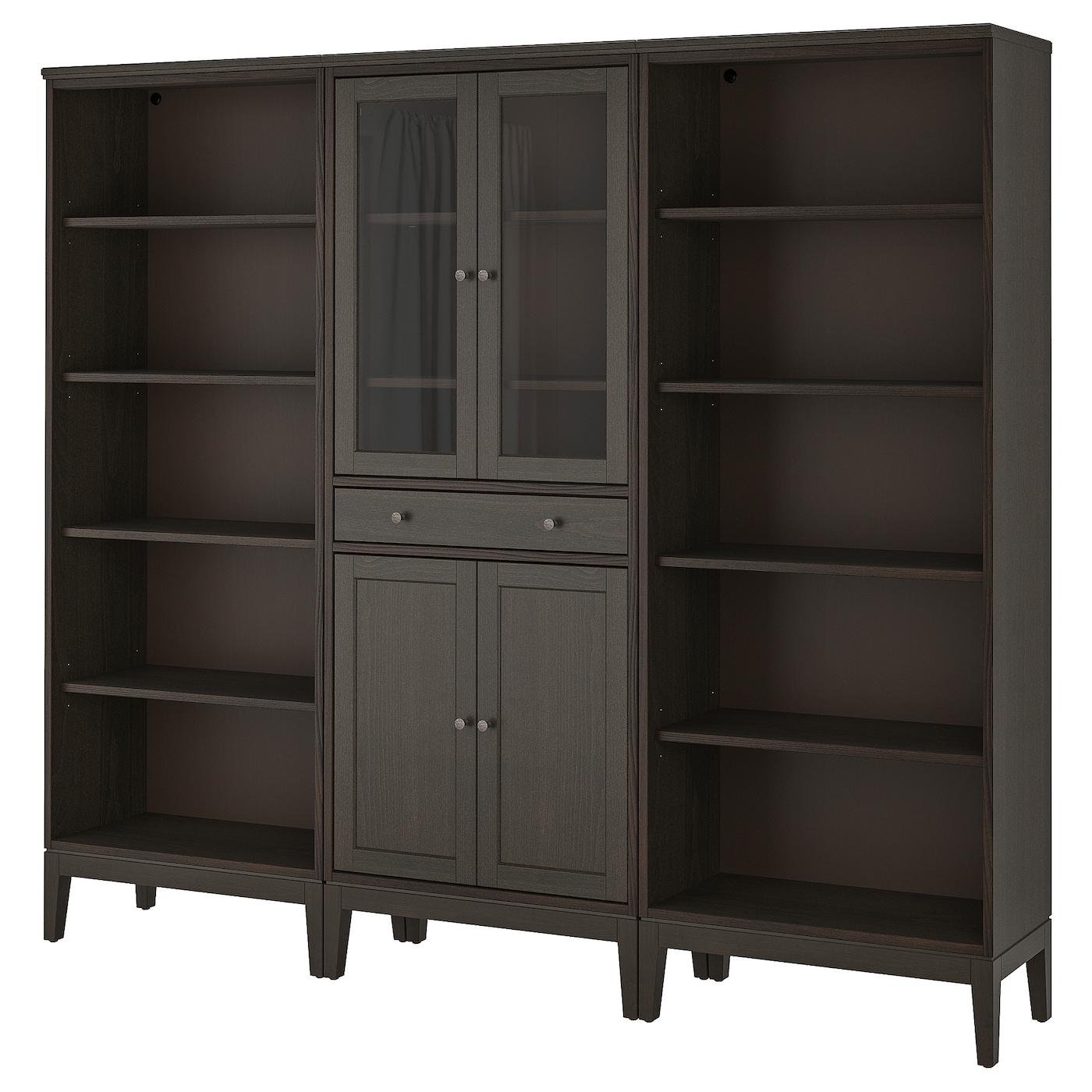 комбинация д/хранения+стекл дверц, темно-коричневый/морилка, 244x39x211 см