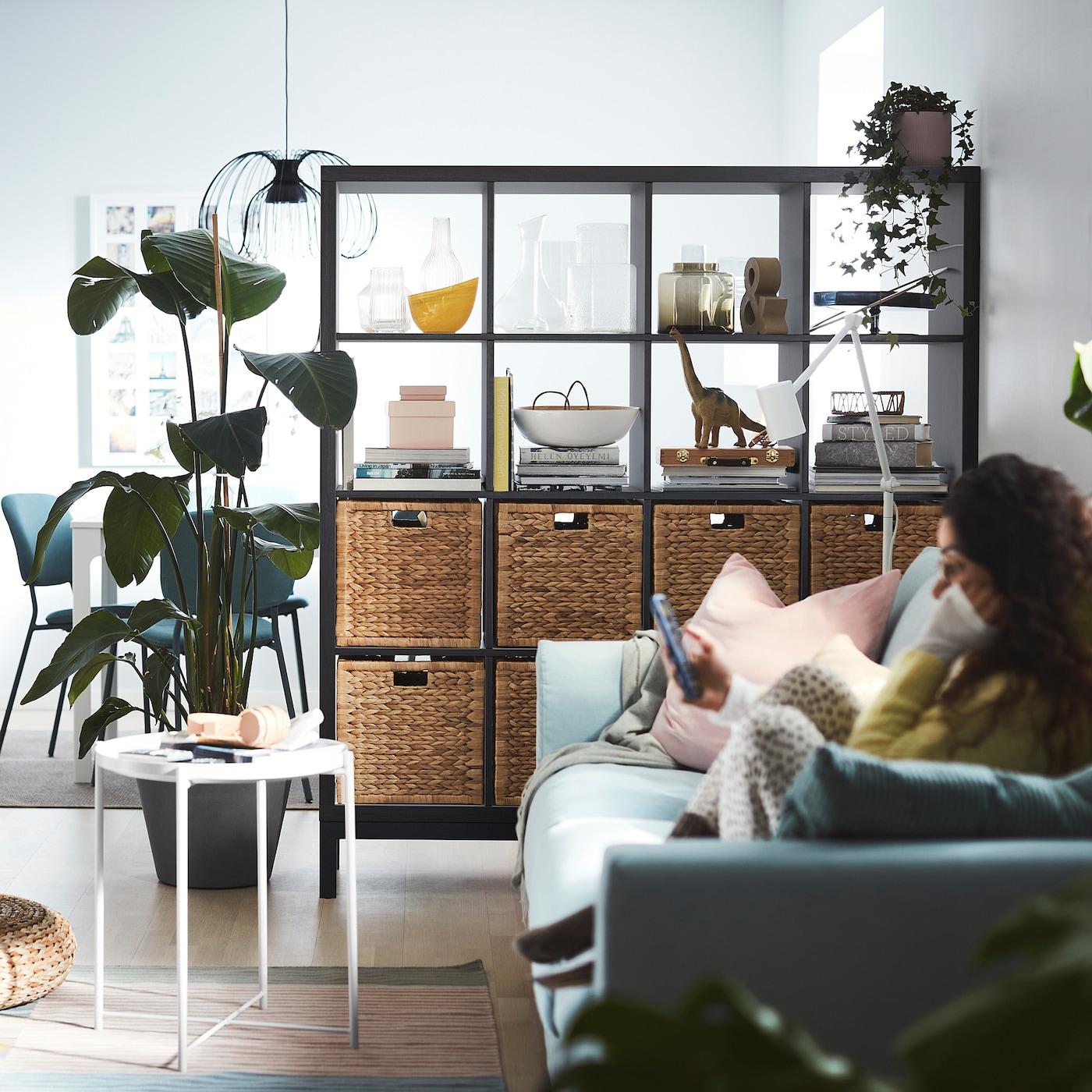 Вы можете использовать этот стеллаж в качестве межкомнатной перегородки, чтобы отгородить пространство в комнате. При этом у вас будет много места для хранения.