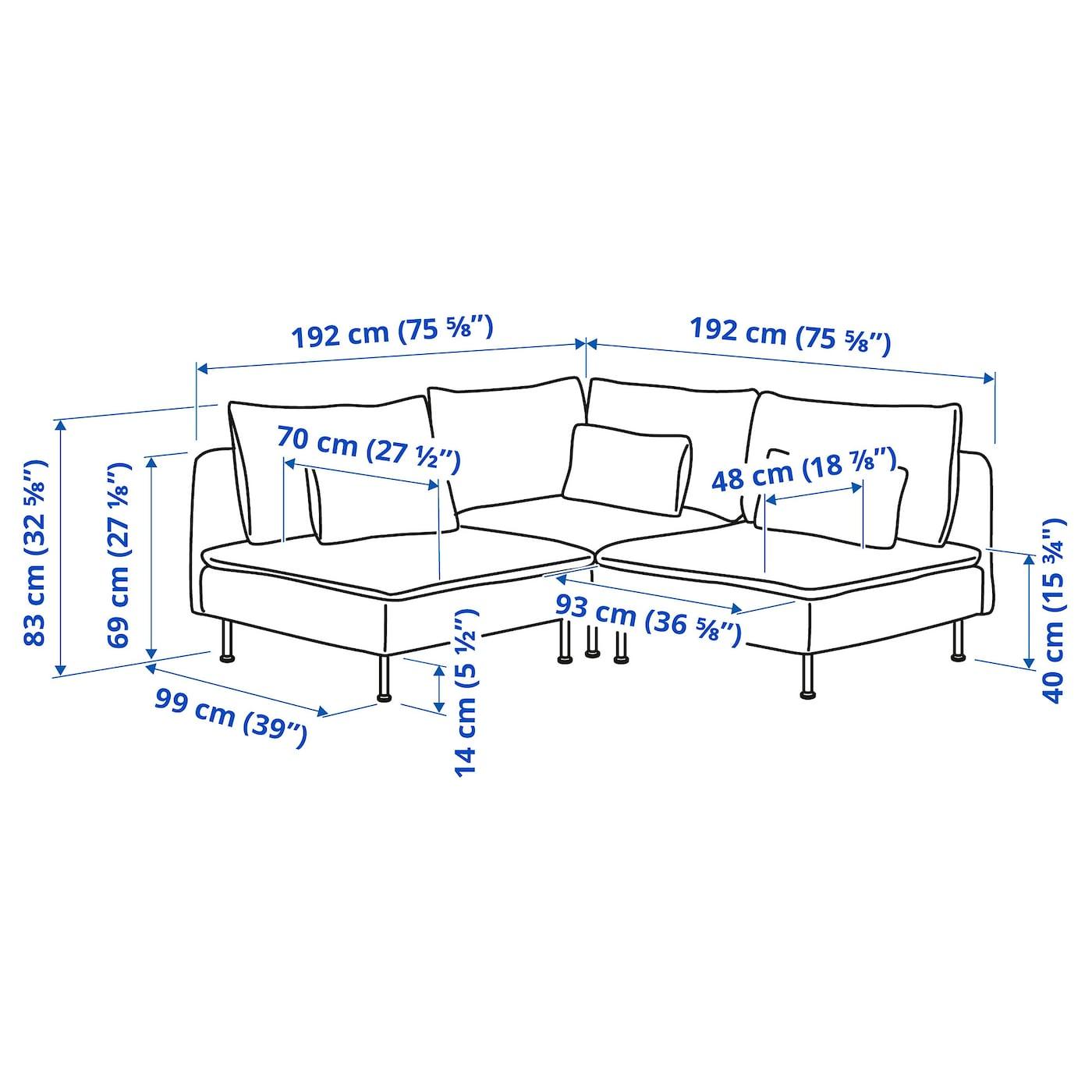 3-местный угловой диван, фридтуна светло-бежевый dimensions