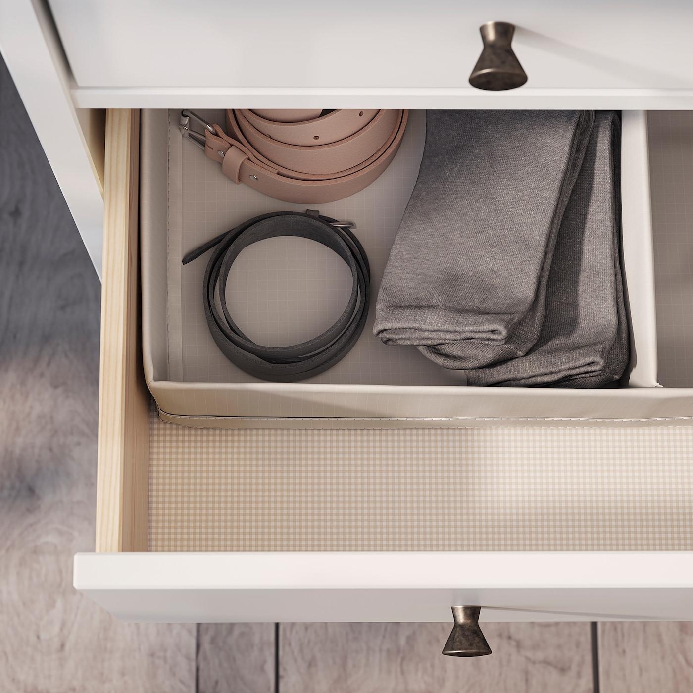 В комоде ИДАНЭС с 6 ящиками можно хранить все что угодно: от полотенец до одежды. А на верхнюю панель можно поставить предметы, которые вы хотите продемонстрировать.