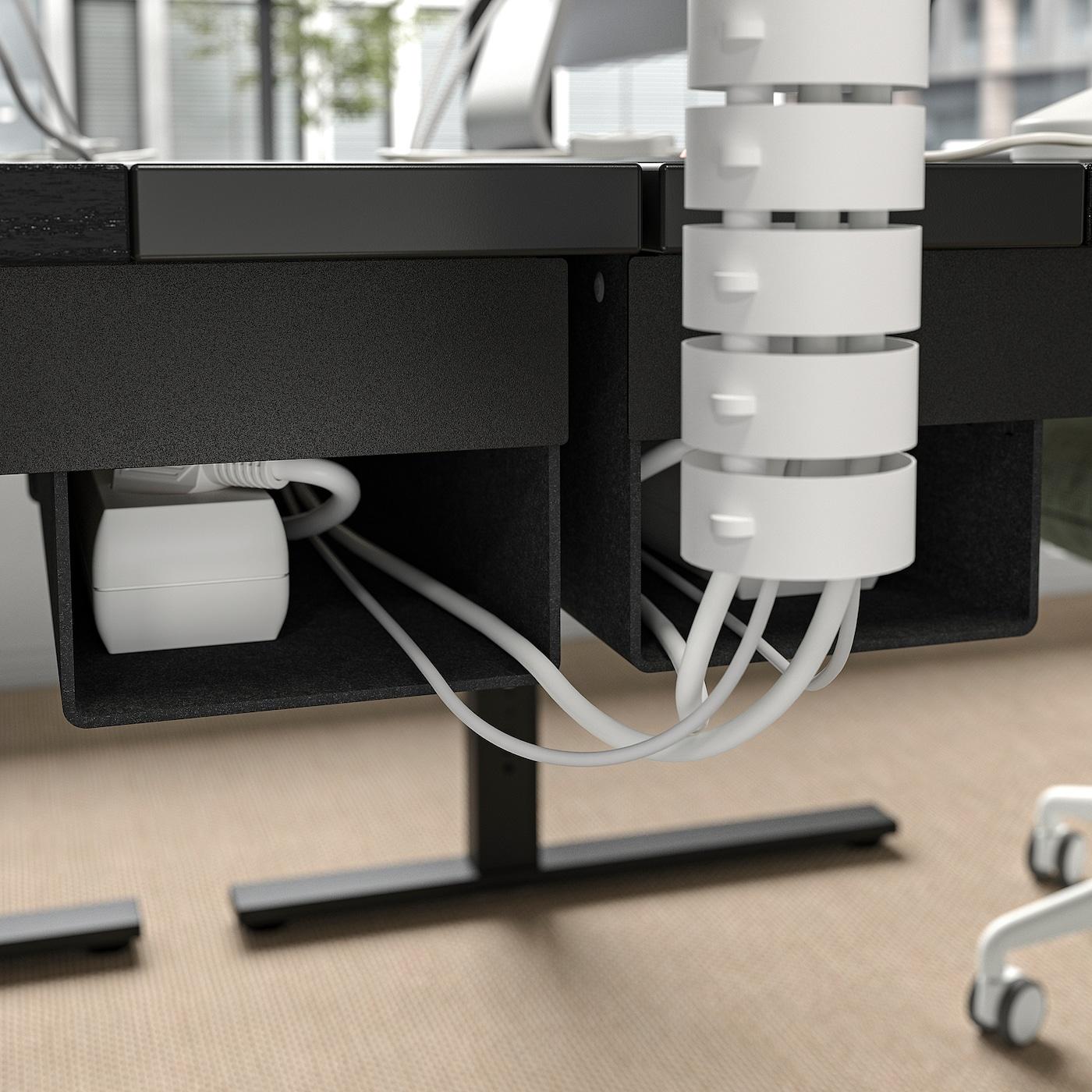 Провода можно убрать в отделение стола с крышкой и провести под столом в лоток для размещения проводов.