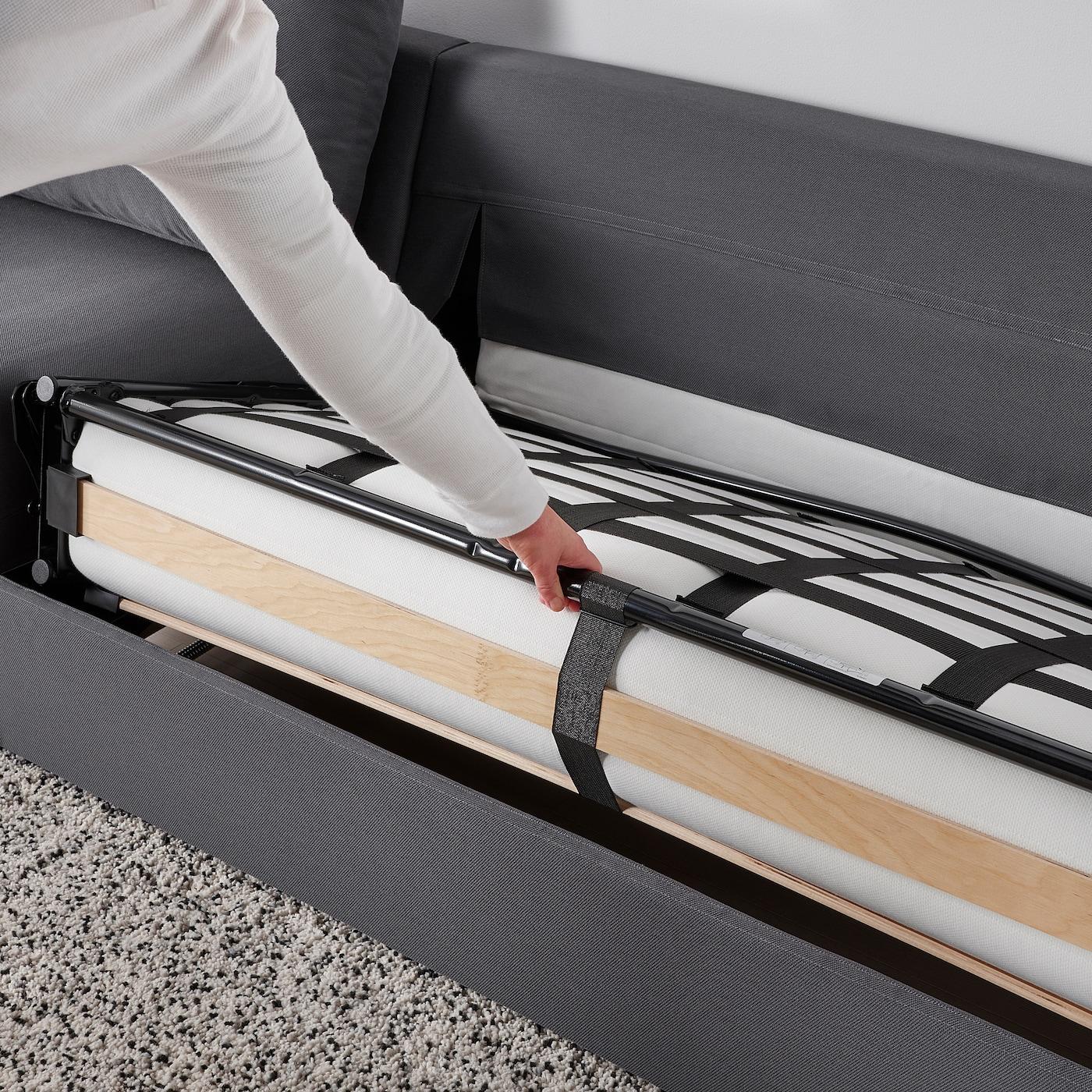 Можно дополнить подголовником ВИМЛЕ, чтобы сделать спинку дивана выше и обеспечить комфортную опору для шеи.