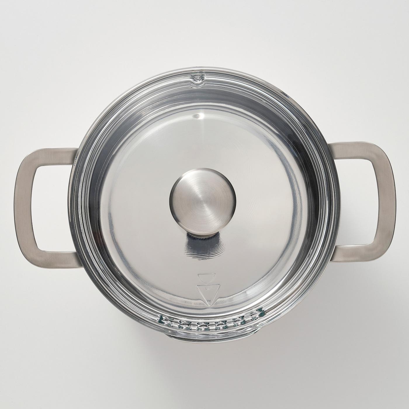 Эта кастрюля оснащена крышкой из жаропрочного стекла с встроенным ситечком.