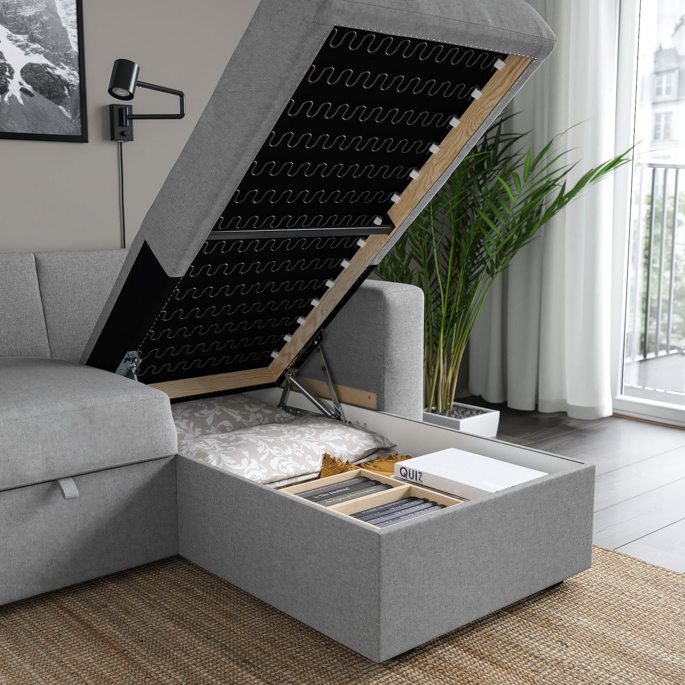 Козетка с отделением для хранения. Крышка фиксируется в открытом положении, что позволяет легко и безопасно доставать нужные вещи.