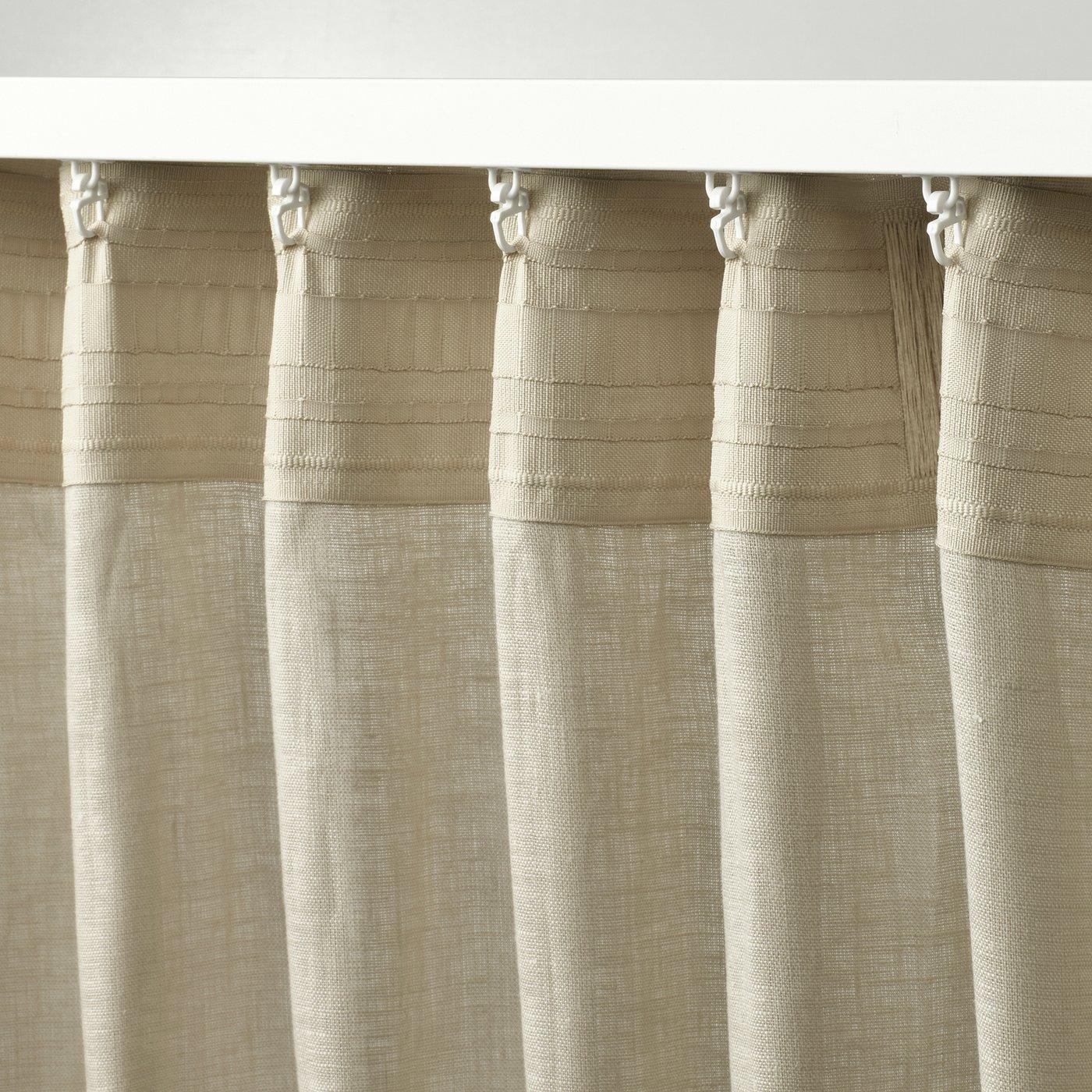 Zasłona, 2 szt., len beżowy/na taśmie,