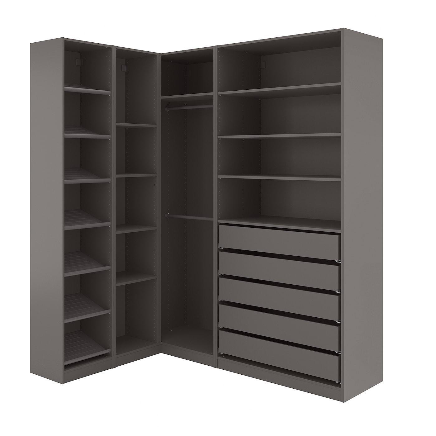гардероб угловой, темно-серый, 161/188x236 см