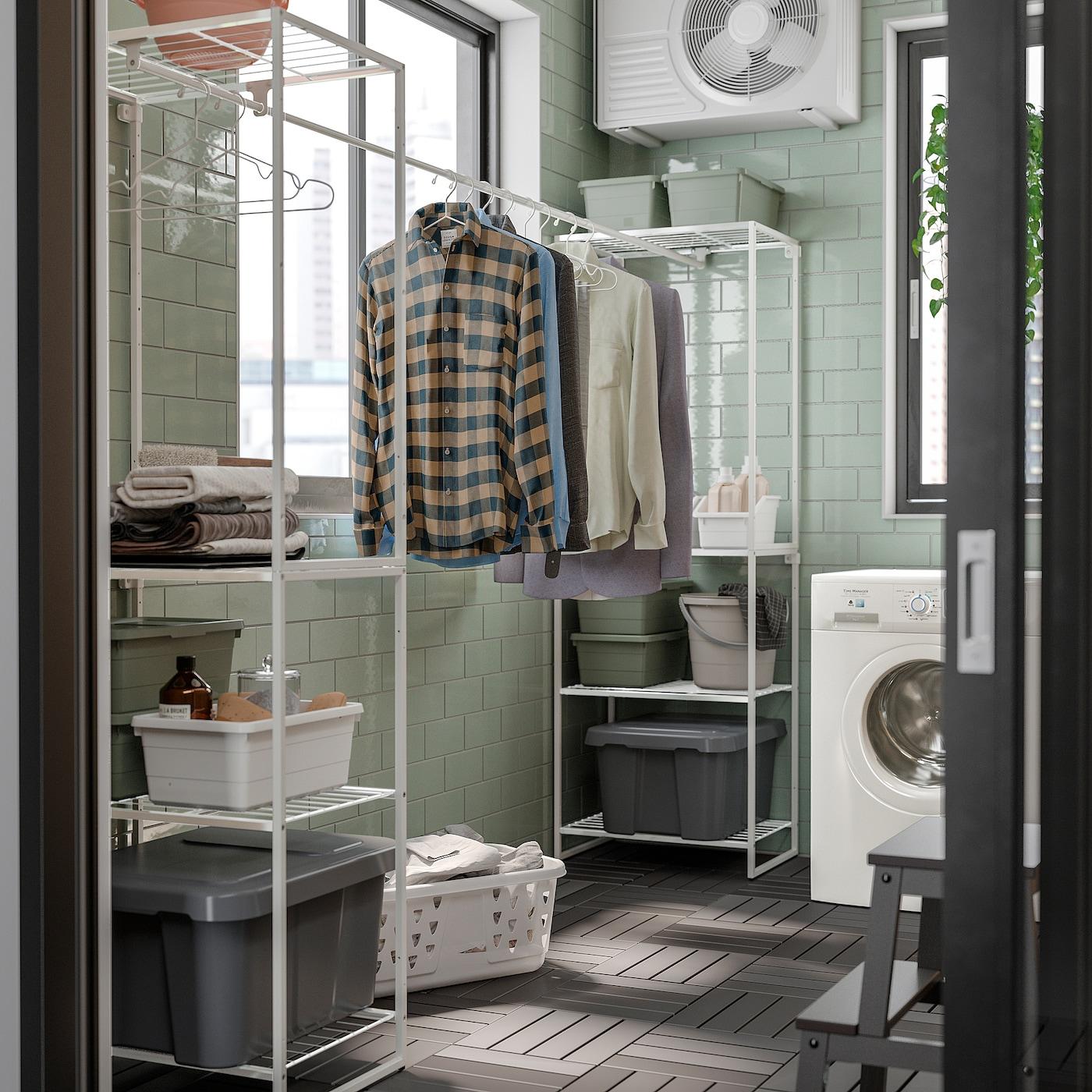 Платяная штанга и другие элементы системы хранения ЙОСТЕЙН помогут вам обустроить удобную зону прачечной.