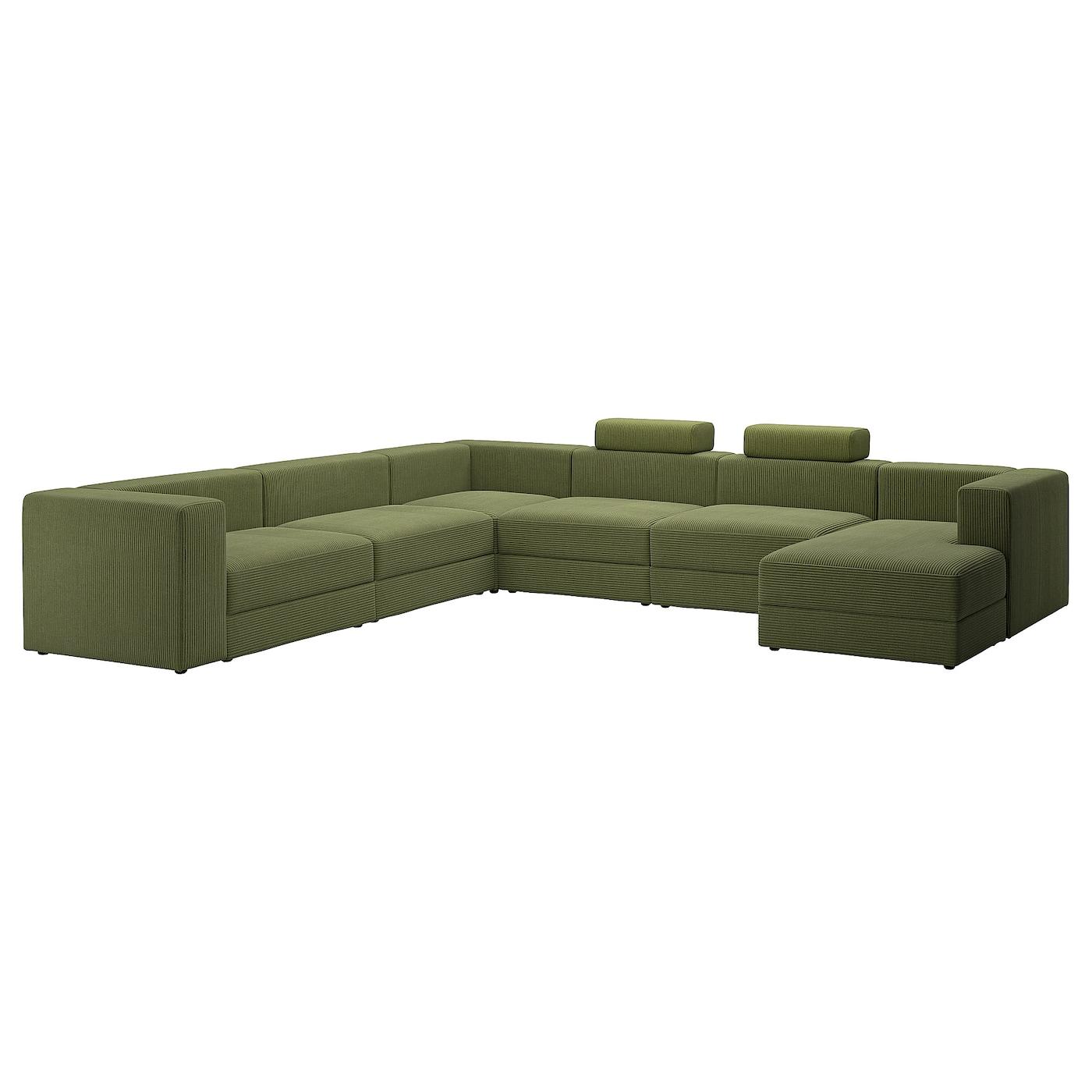 7-местный п-образный диван, с козеткой, правый с подголовниками/самласа темный желто-зеленый dimensions