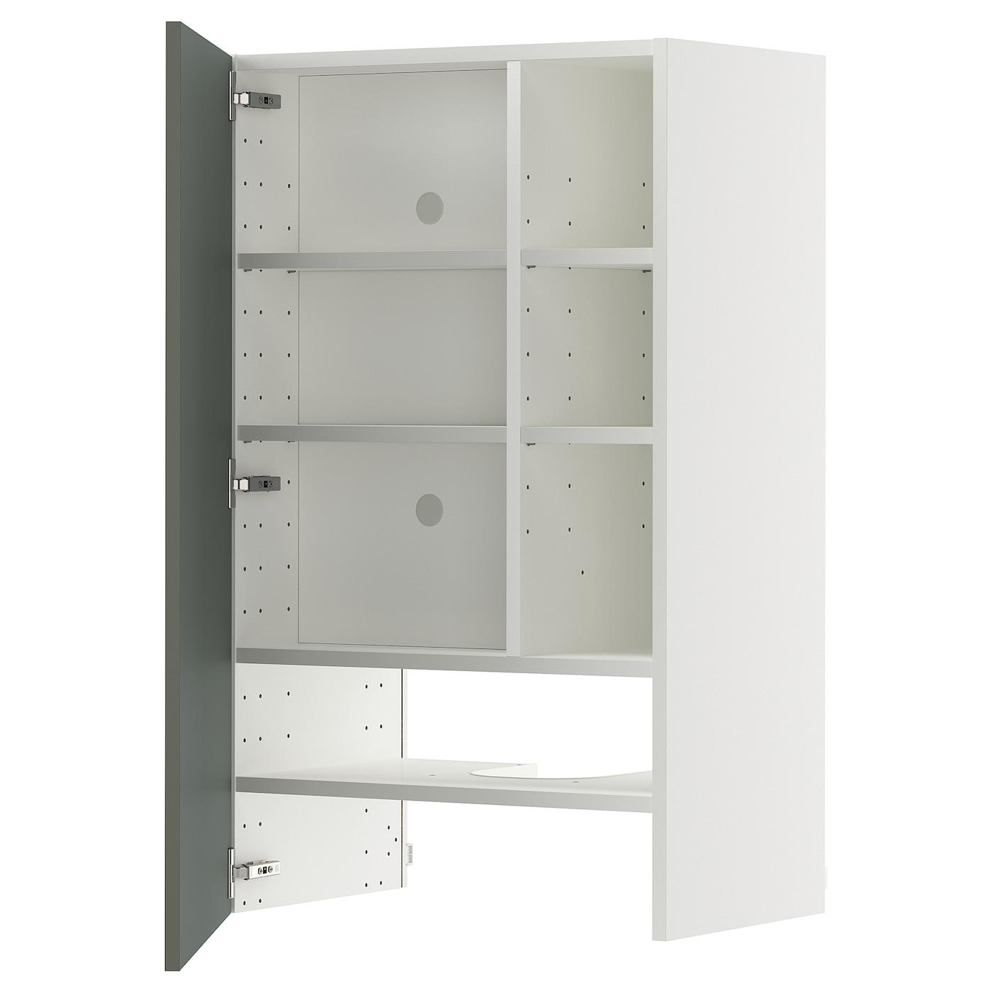 навесной шкаф д/вытяжки/полка/дверь, белый/Nickebo матовый серо-зеленый, 60x100 см