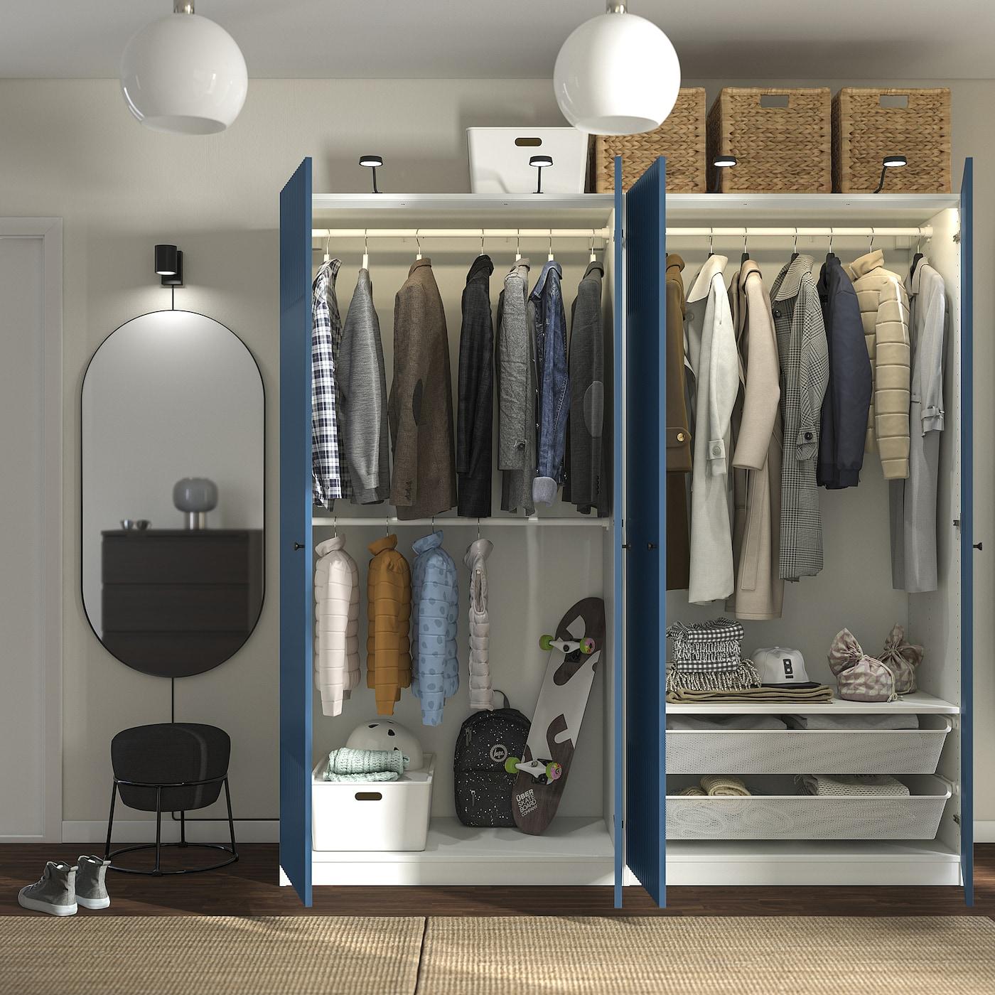 гардероб, комбинация, белый/синий, 200x60x201 см