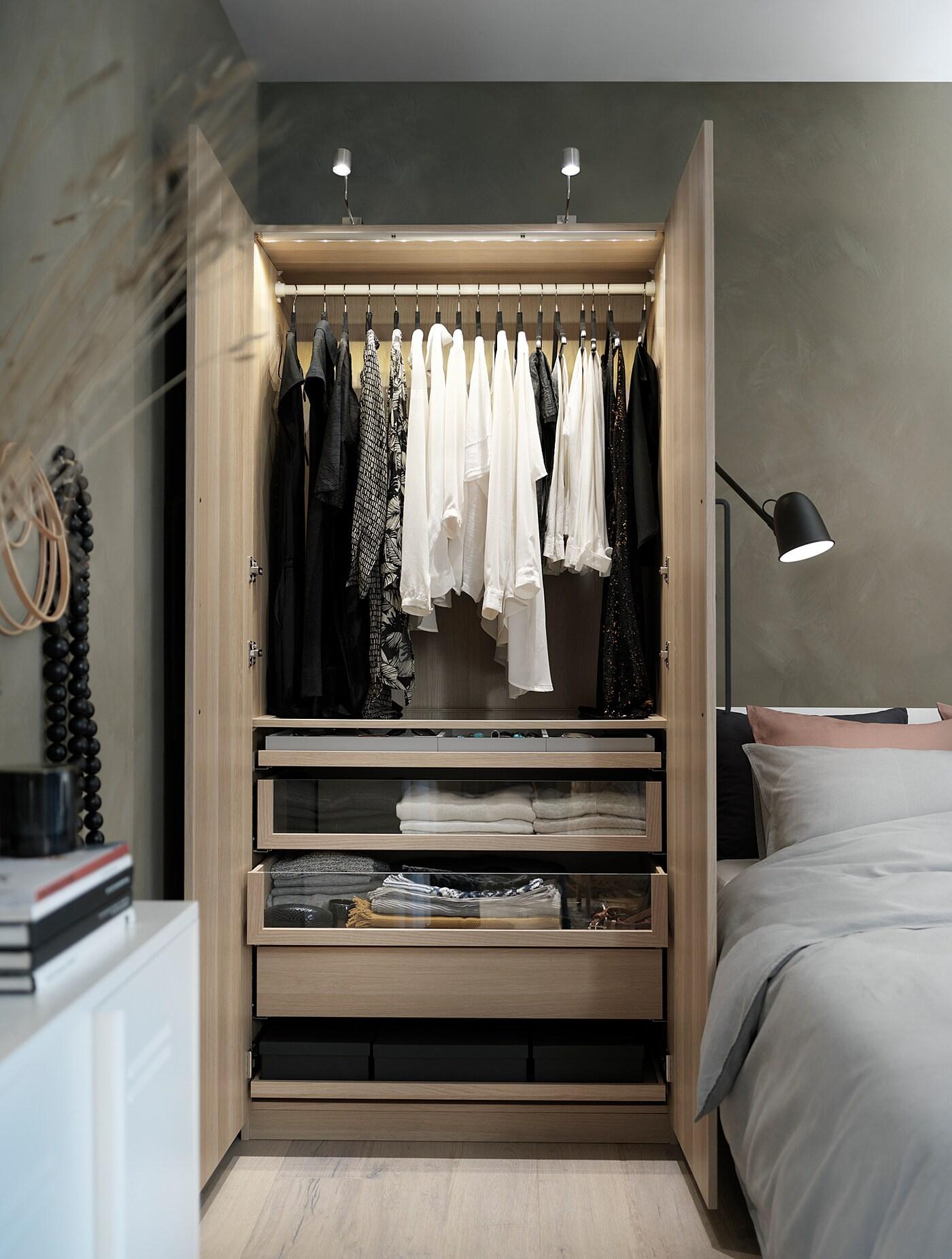 С помощью программы планирования гардероба ПАКС вы можете легко дополнить свою комбинацию интегрированной подсветкой. После выбора источника освещения программа предложит необходимые аксессуары.