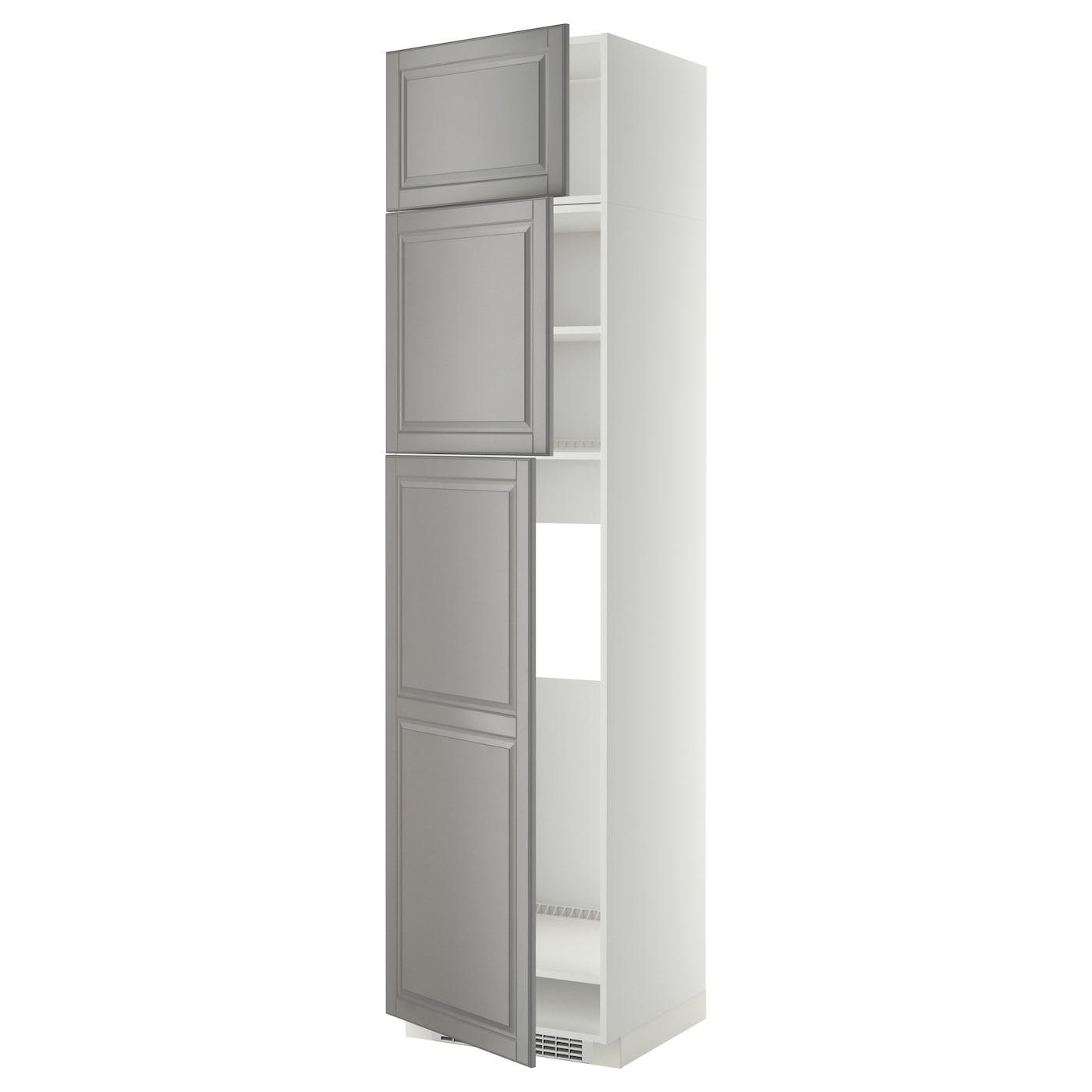 высокий шкаф д/холодильника/3дверцы, белый/Bodbyn серый, 60x60x240 см
