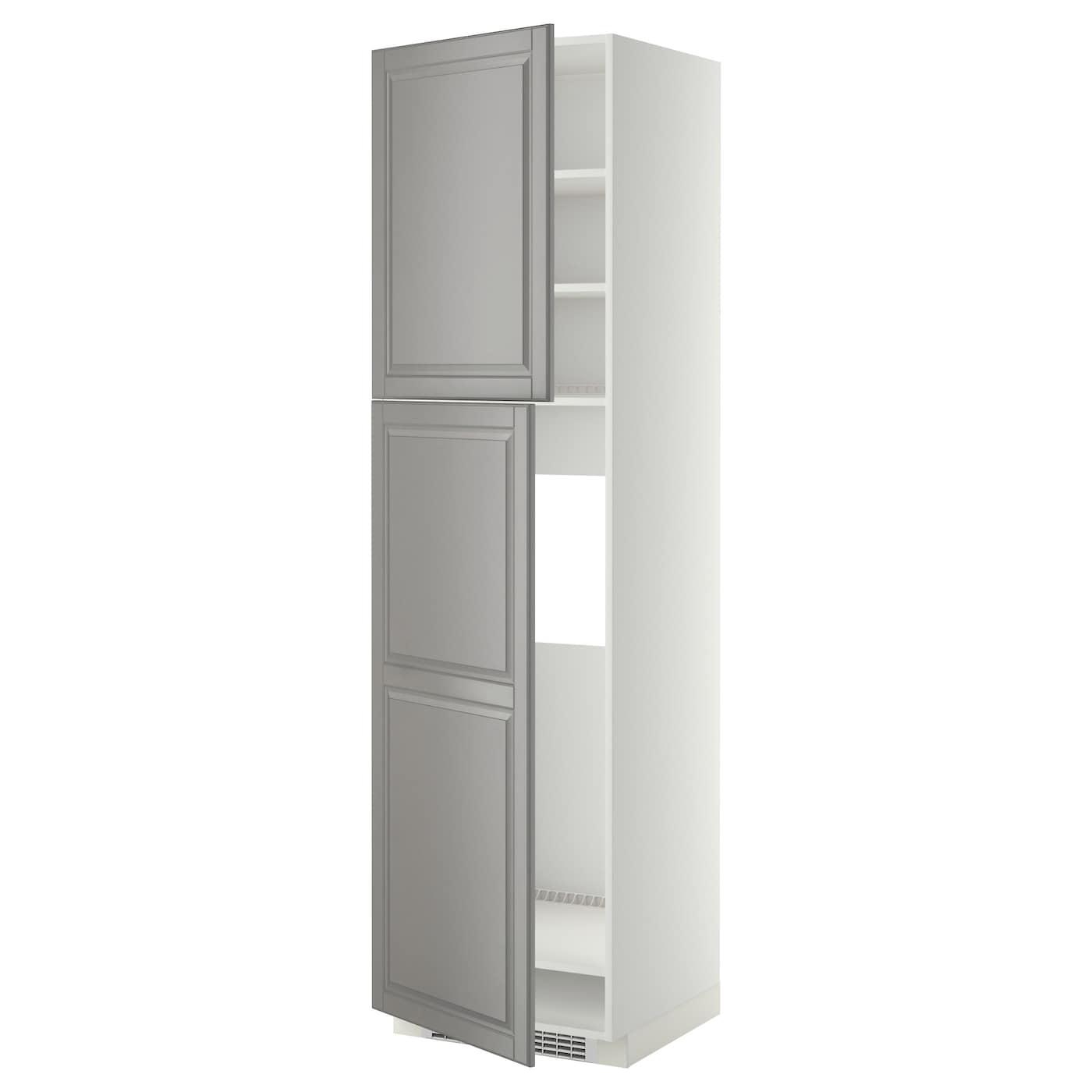 высокий шкаф д/холодильника/2дверцы, белый/Bodbyn серый, 60x60x220 см