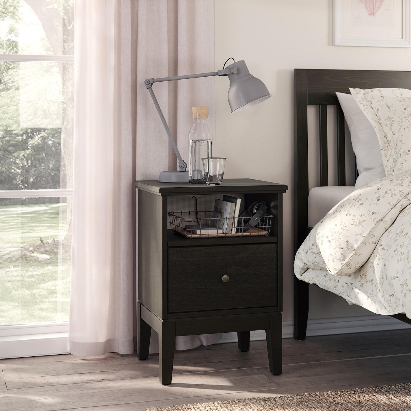 В прикроватной тумбе ИДАНЭС есть выдвижной ящик для закрытого хранения и открытая полка, обеспечивающая хороший обзор и легкий доступ к нужным вещам. Через заднюю стенку можно протянуть кабель к розетке.