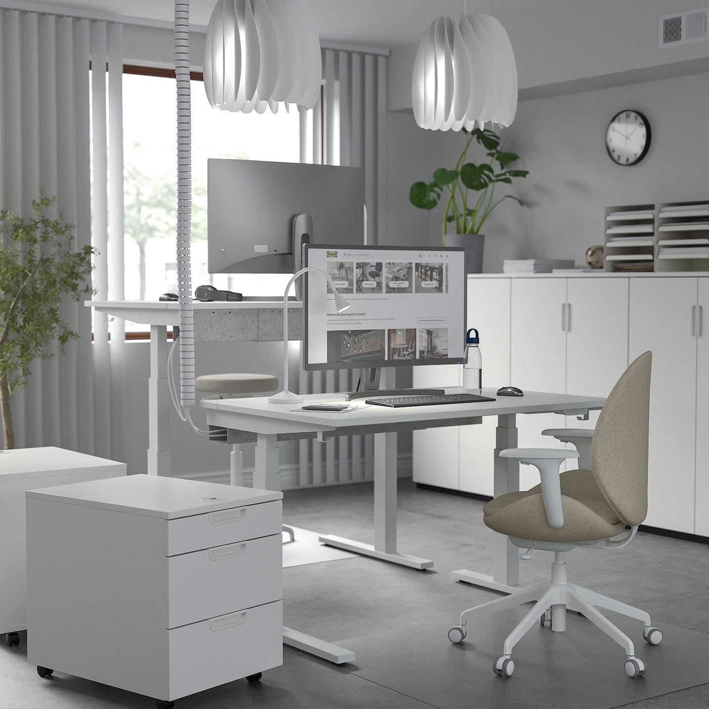 Провода можно убрать в отделение стола с крышкой и провести под столом в лоток для размещения проводов.