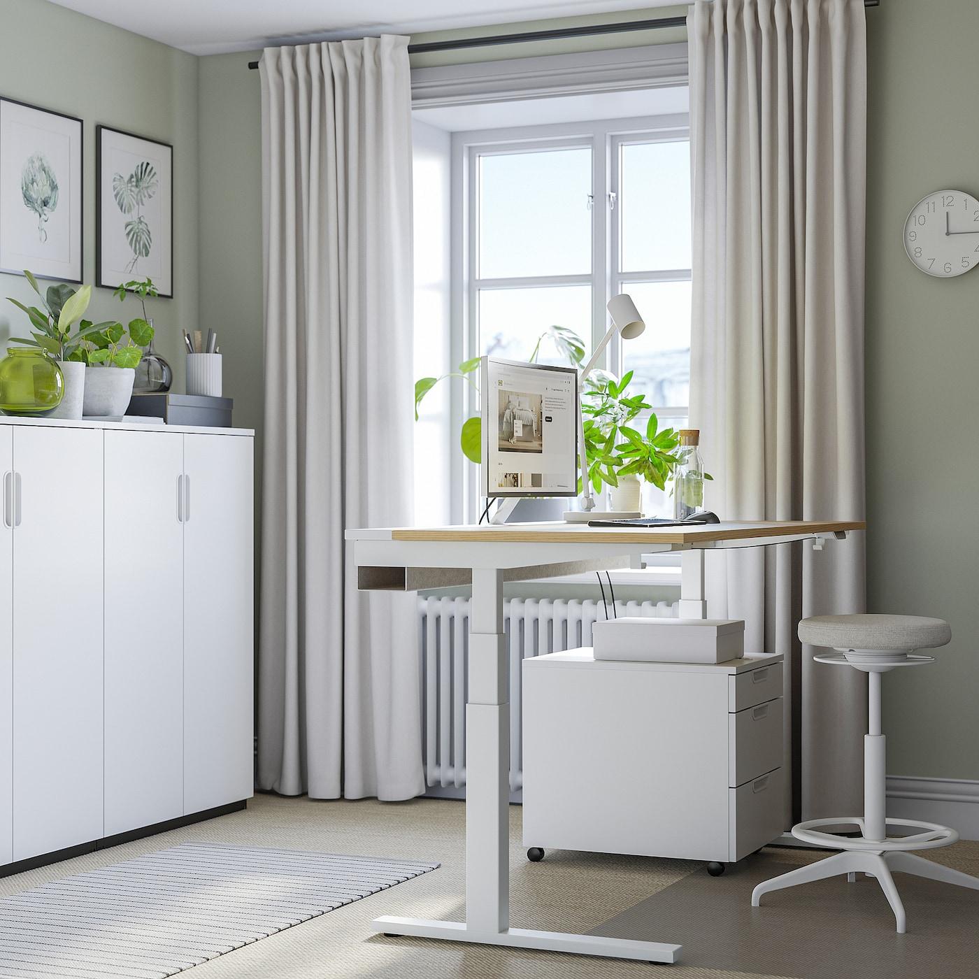 Провода можно убрать в отделение стола с крышкой и провести под столом в лоток для размещения проводов.