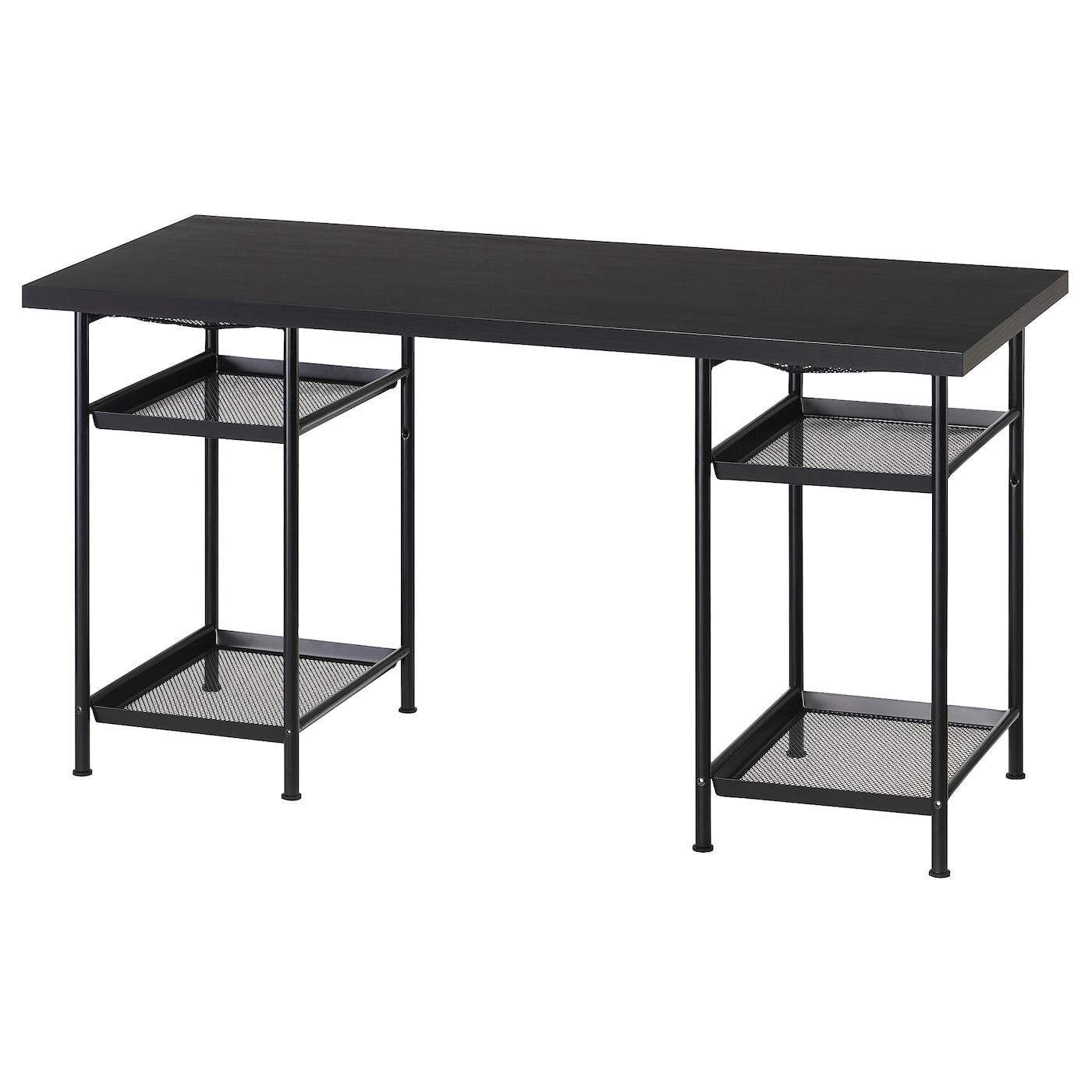 На двух полках достаточно места для бумаги, блокнотов и книг, что позволяет освободить столешницу.